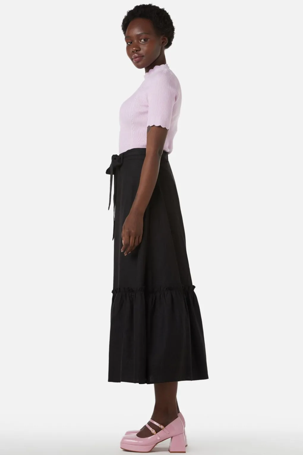 Midi Skirt With Ruffle At Hem
