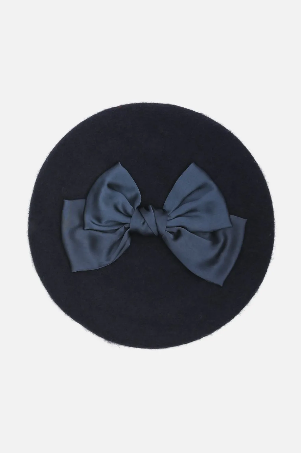 – Woolen Beret With Satin Like Bow