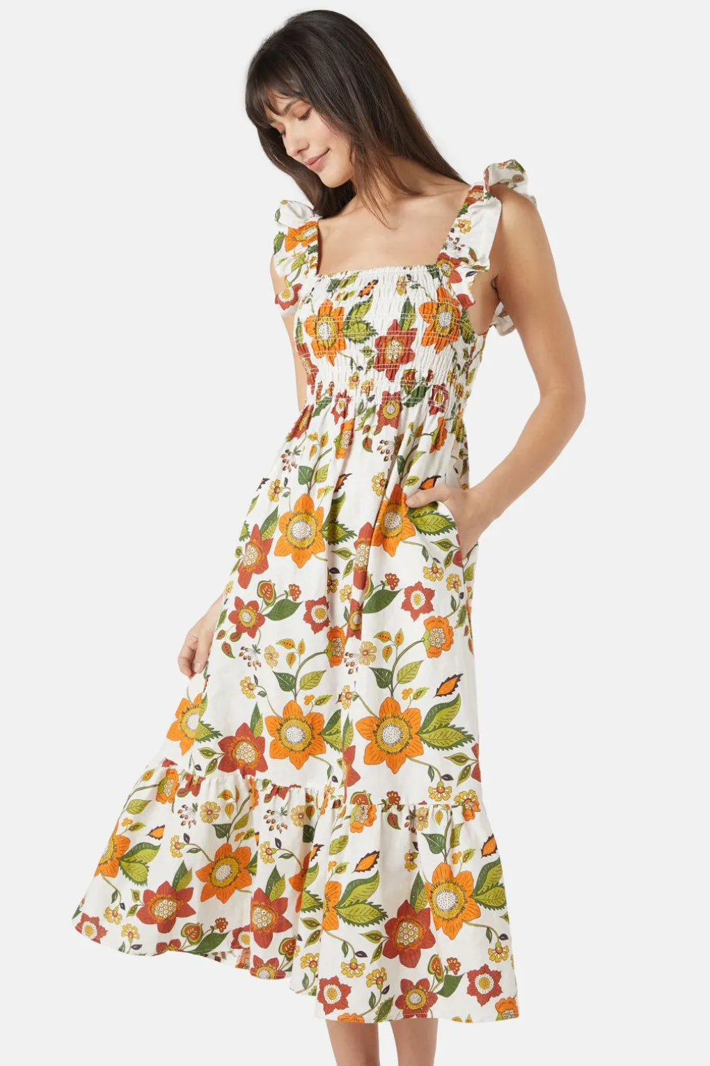 Retro Floral Midi Dress