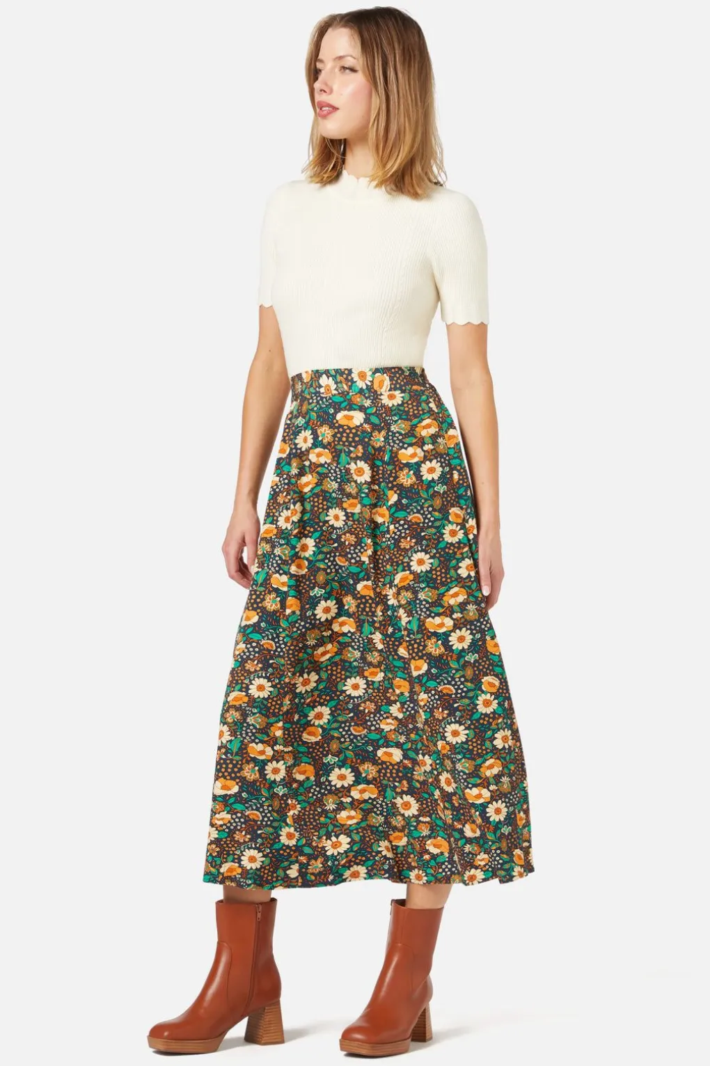 Vintage Floral Midi Skirt