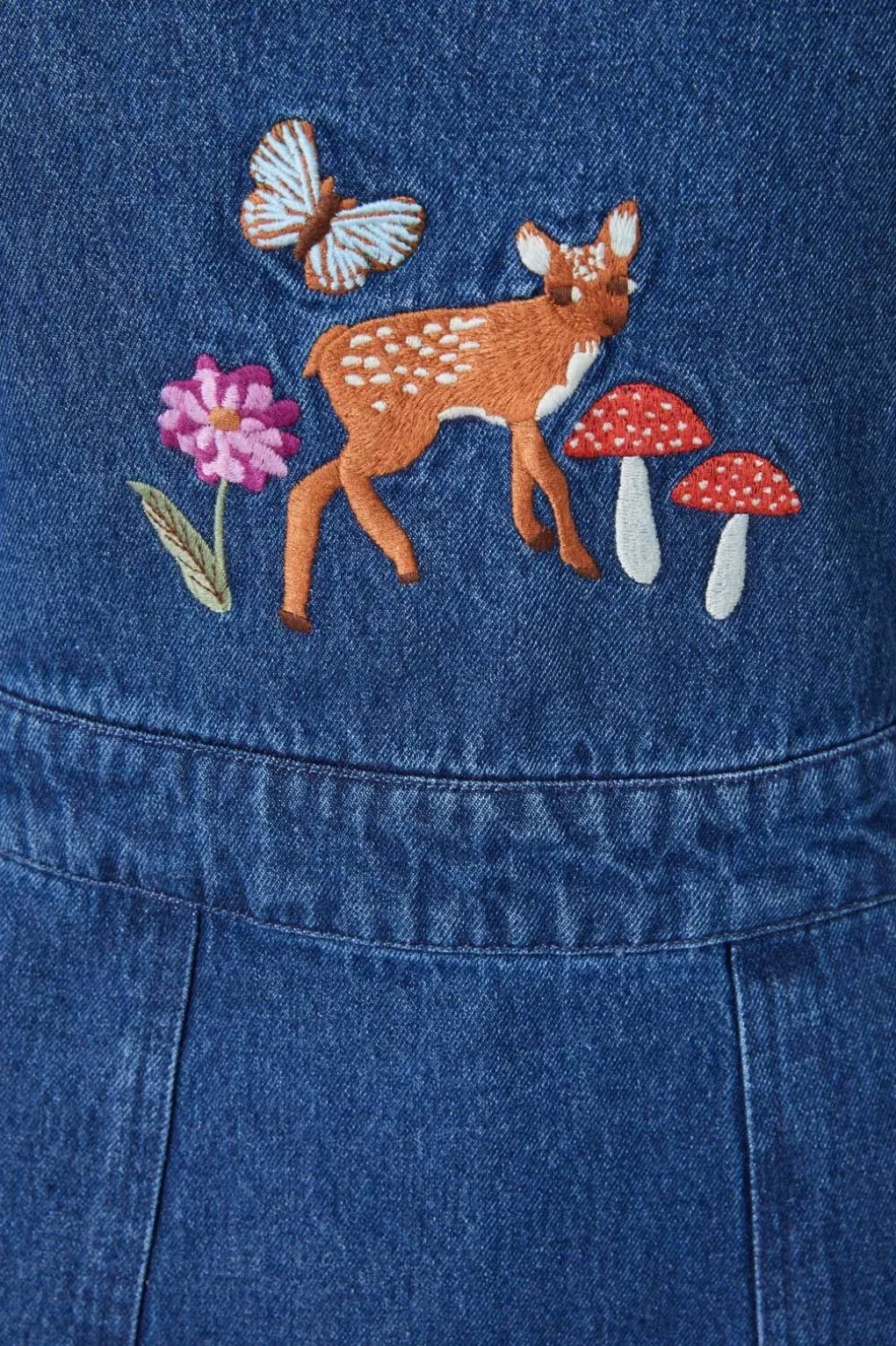Embroidered Deer Denim Pinny