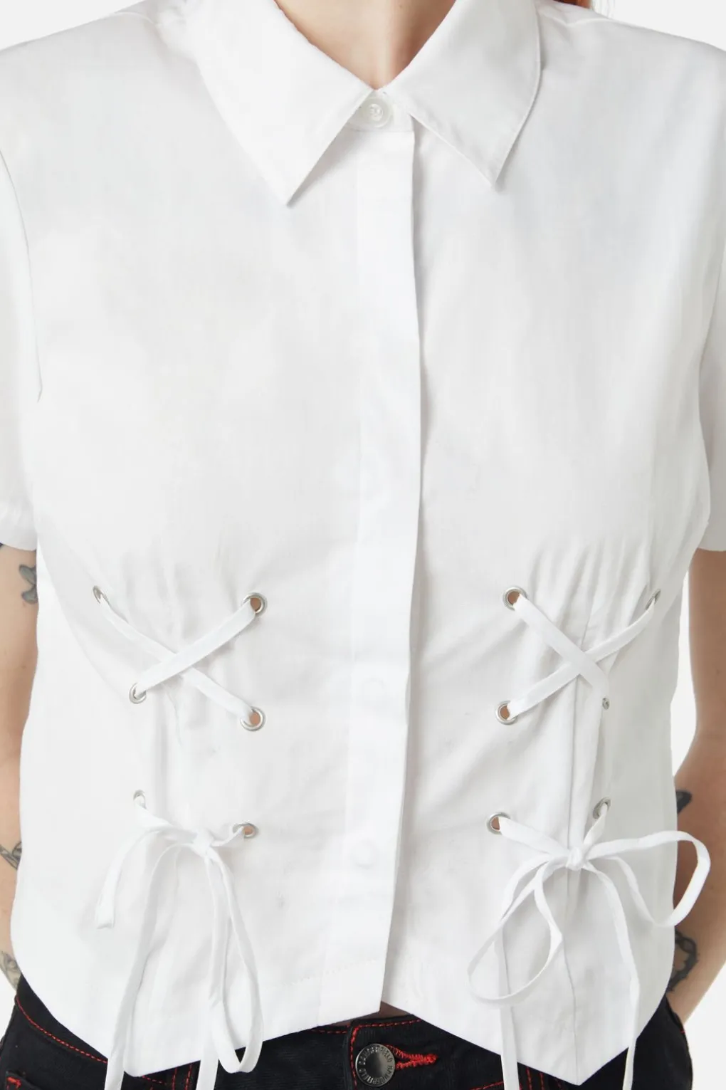 – Eyelets With Ribbon Threaded Through At Front