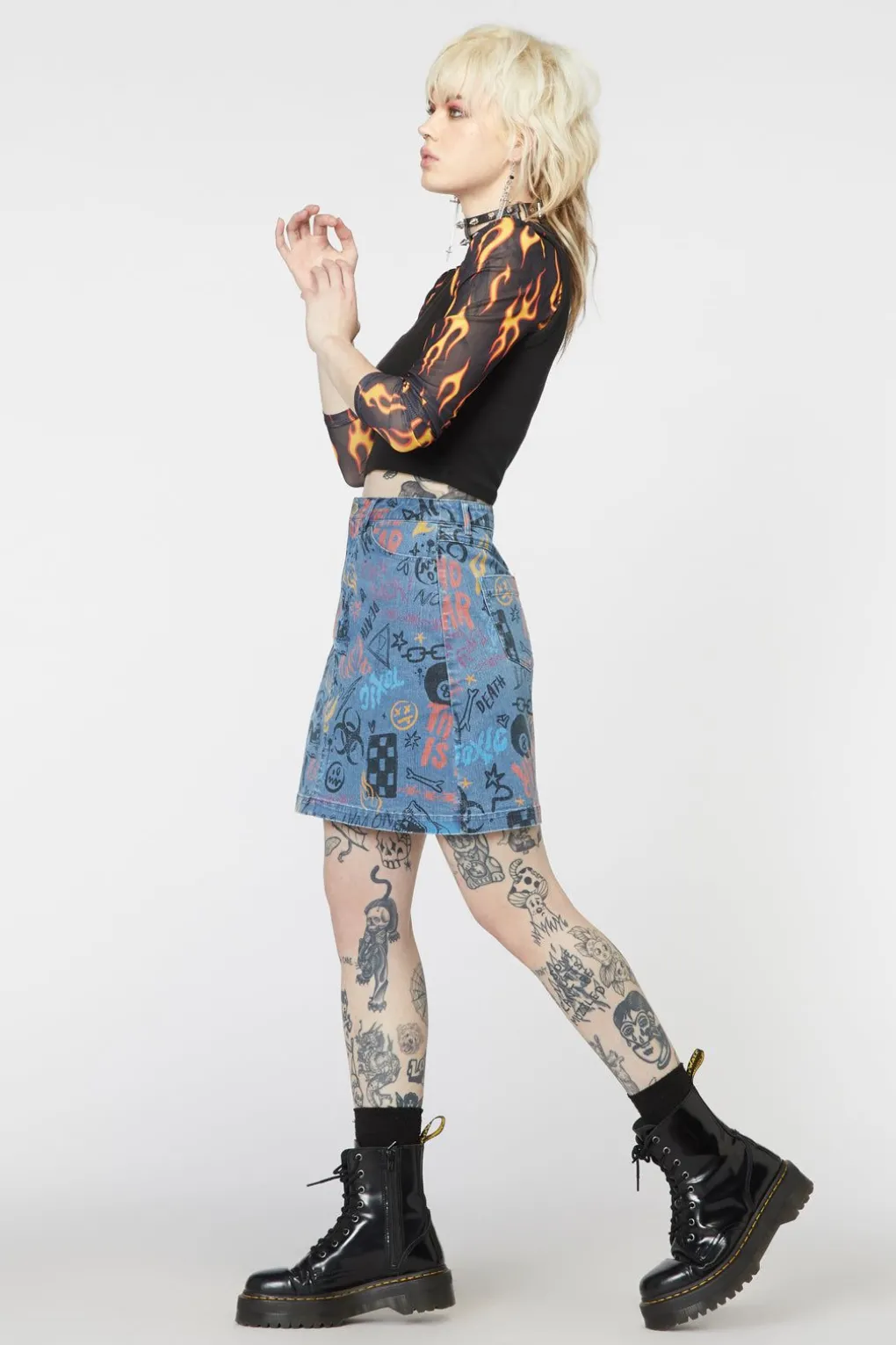 Graffiti Denim Mini Skirt