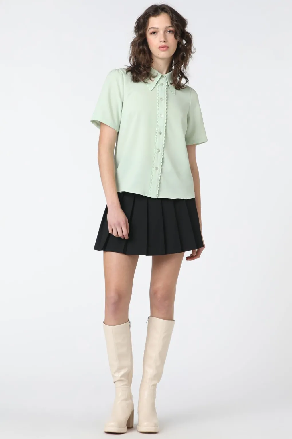 – Scalloped Detailed Edging Along Collar And Center Front