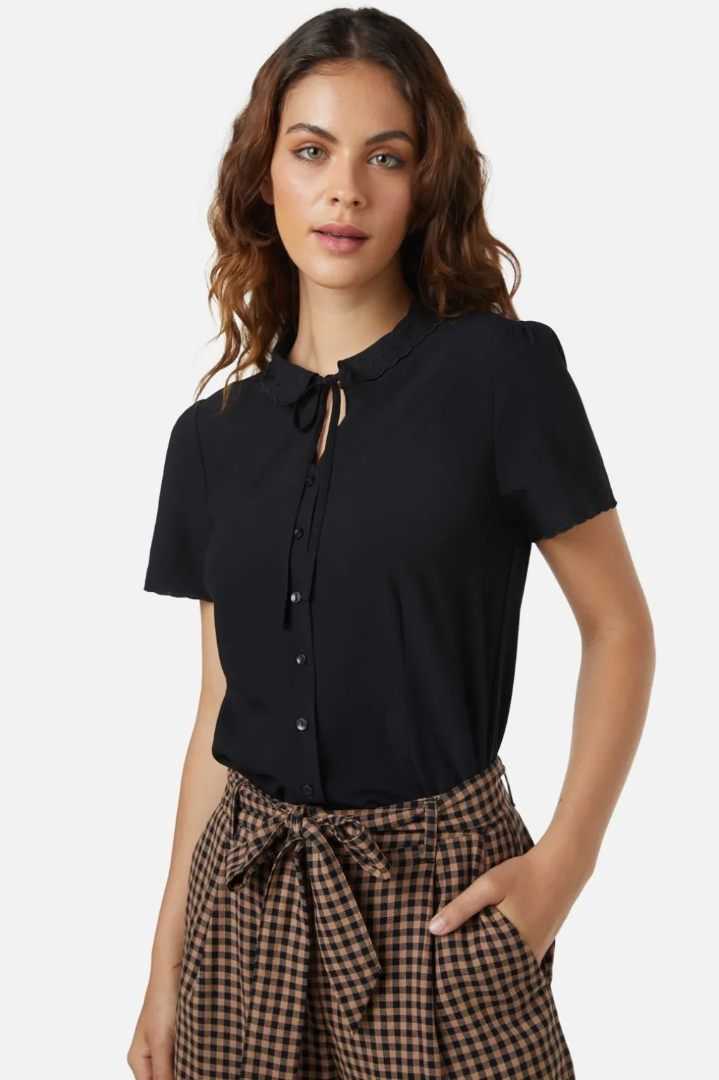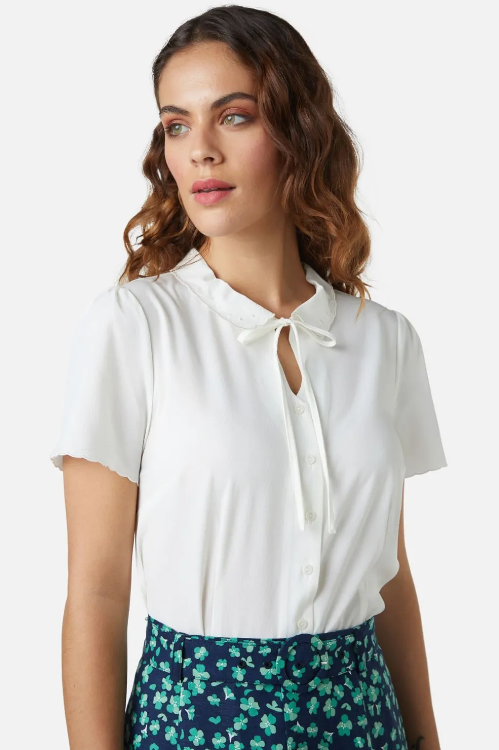 – A Very Sweet Vintage Styled Blouse With A Peter Pan Collar & Bow Front