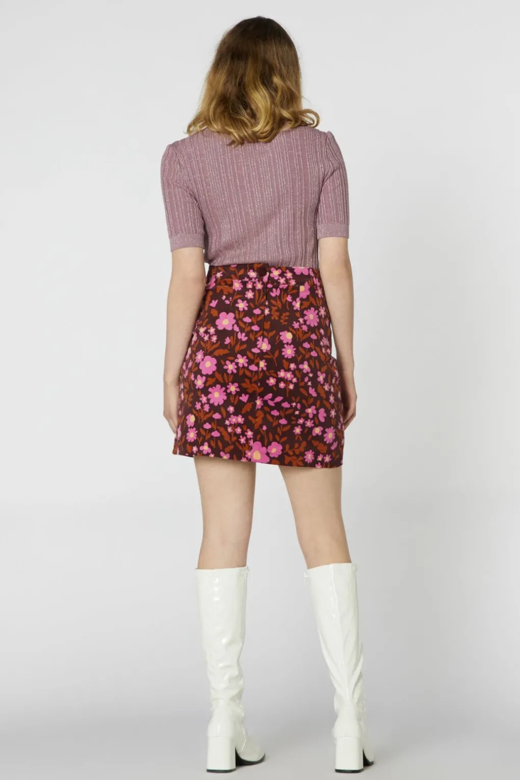 High Wasted Floral Corduroy Mini Skirt