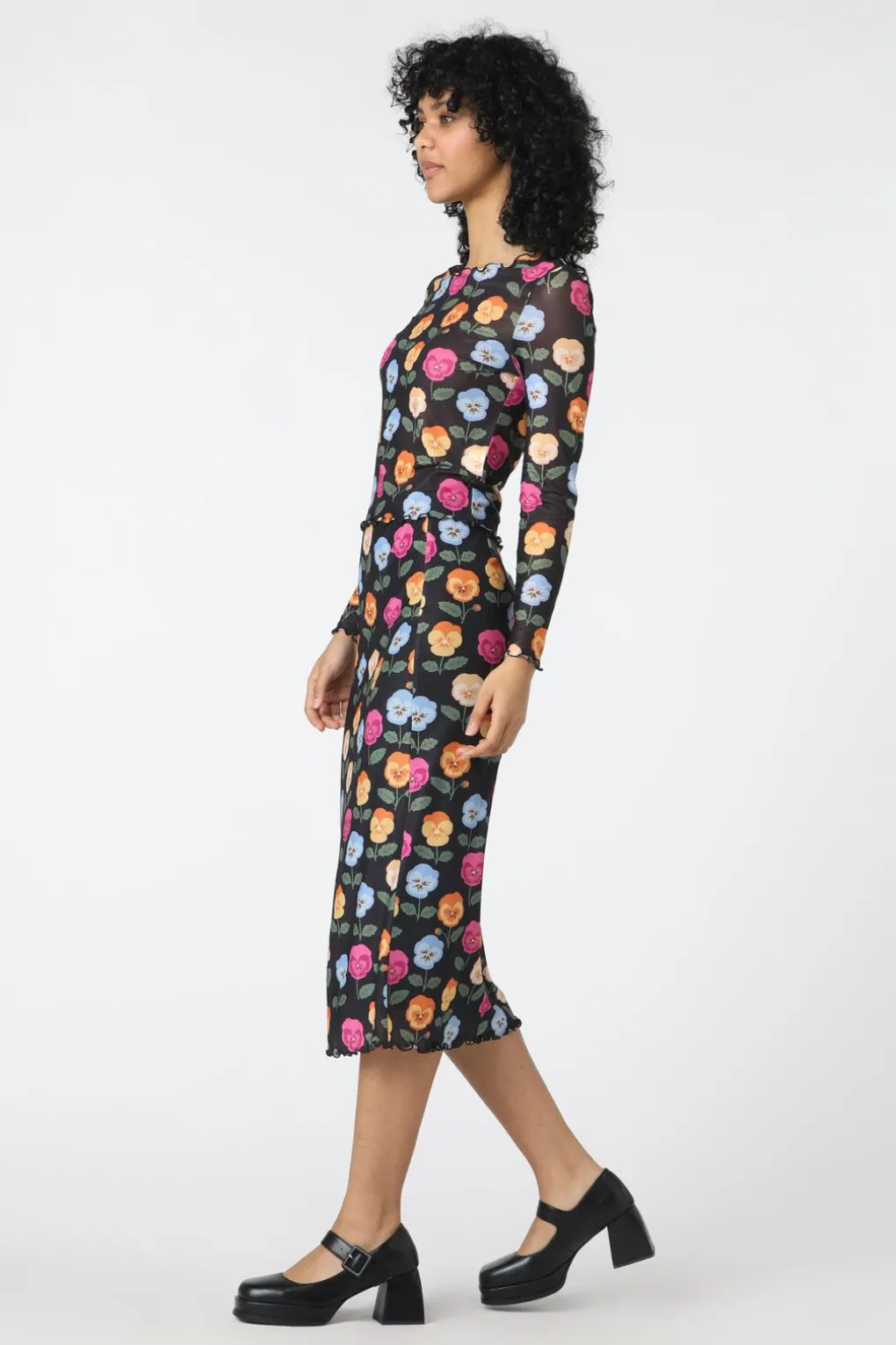 Pansy Printed Mesh Top