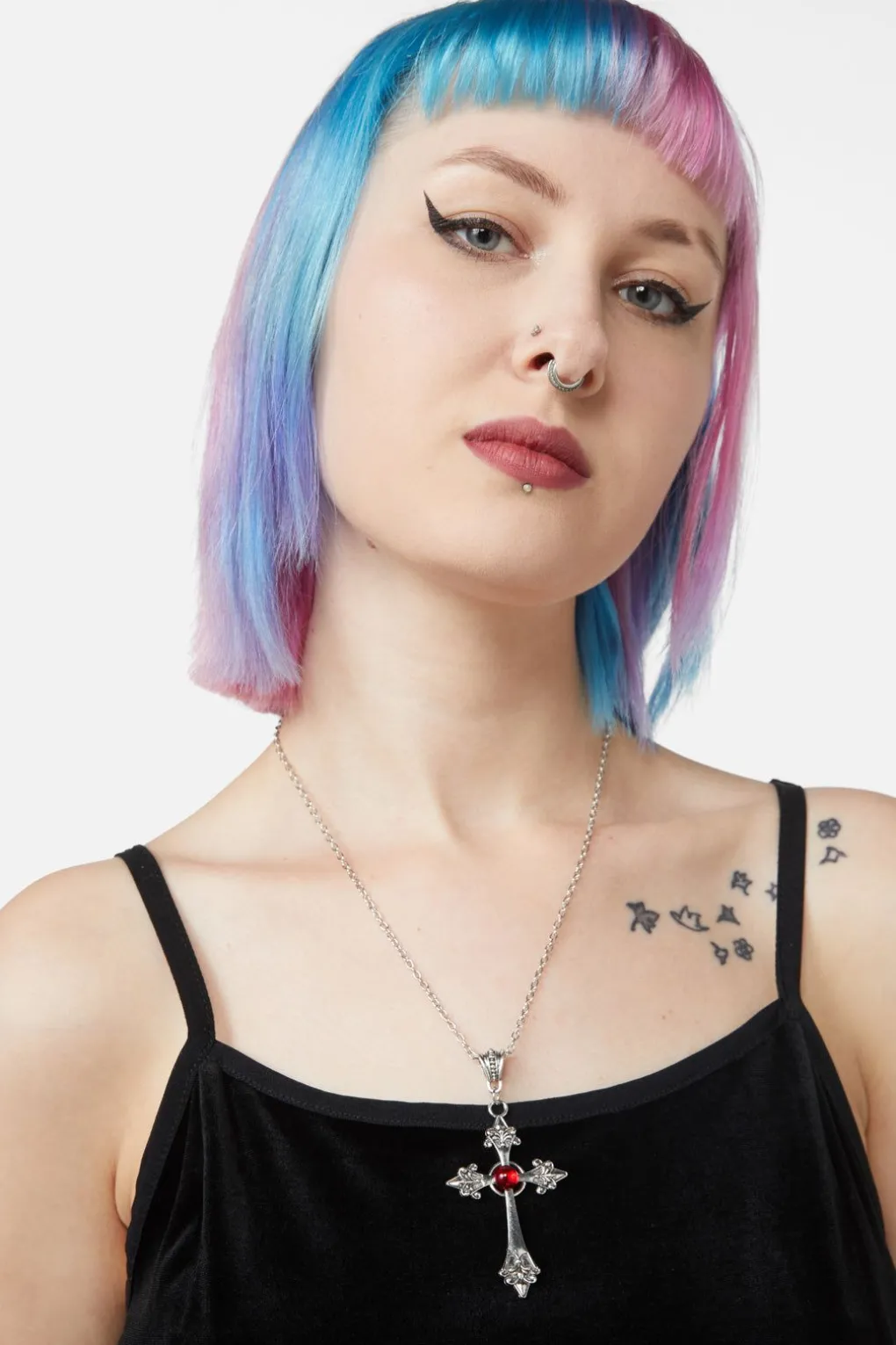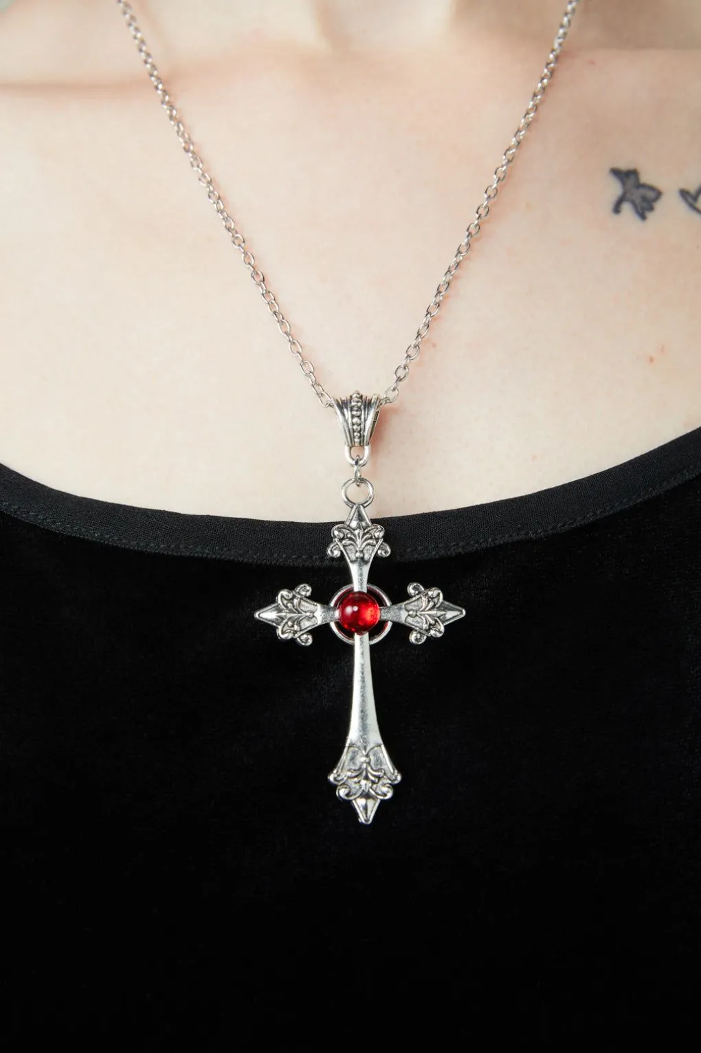 Red Stone Cross Necklace