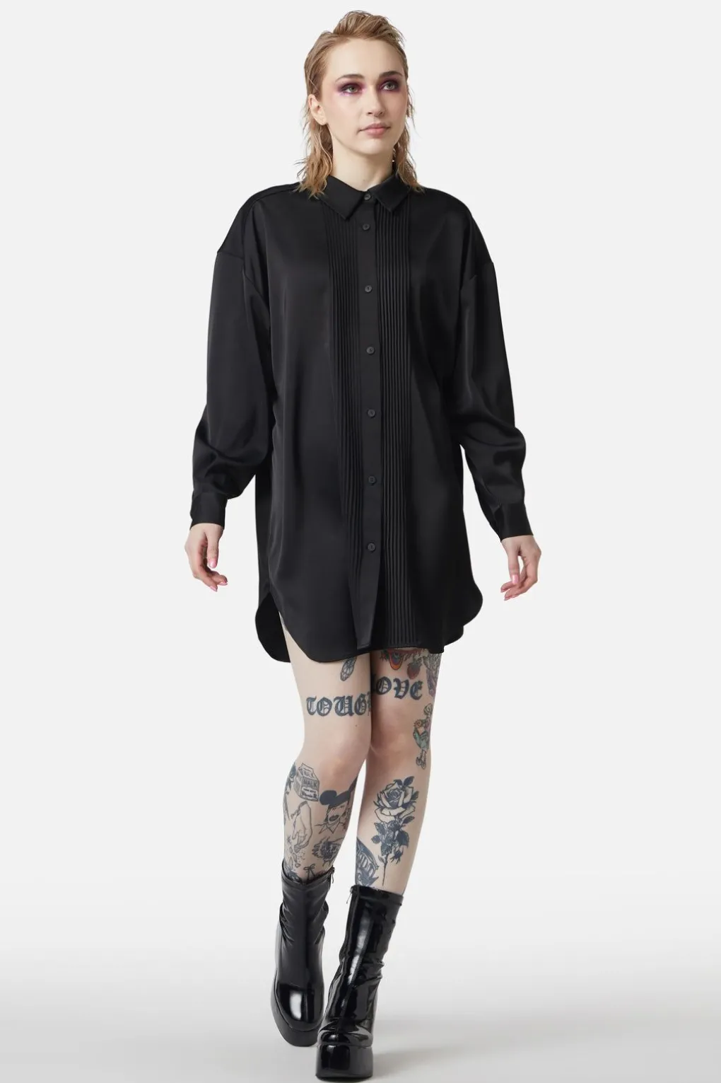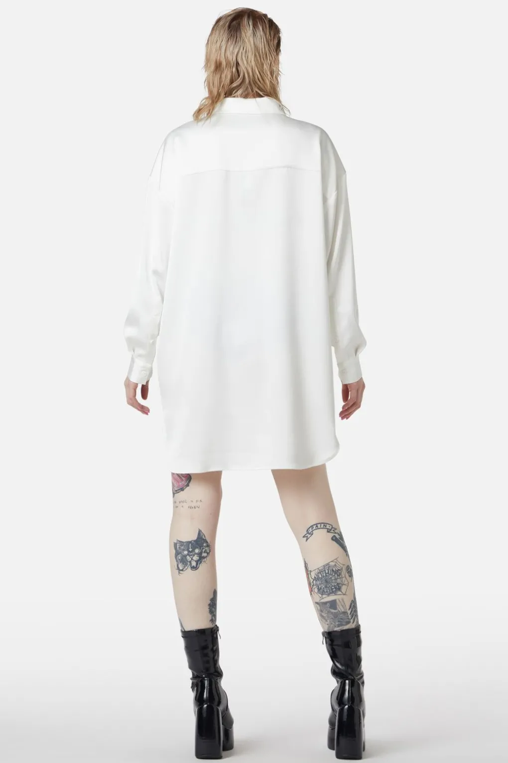 Satin Tux Shirt Dress