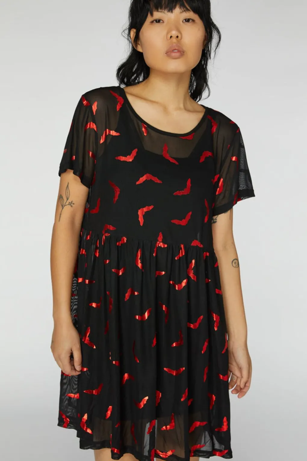 – Sheer Mesh Fabric With All Over Bat Print