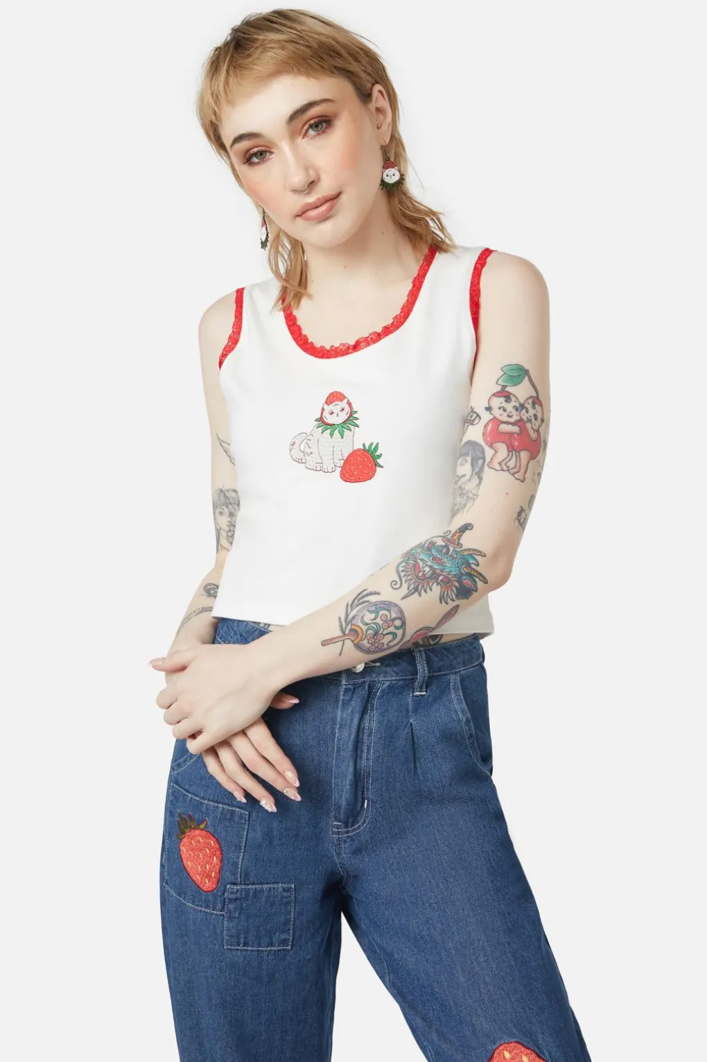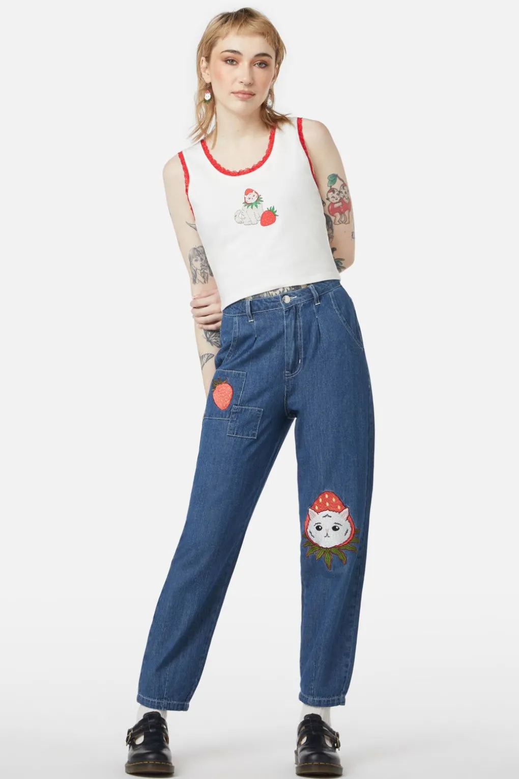 – Strawberry-Cat Embroidery On Front