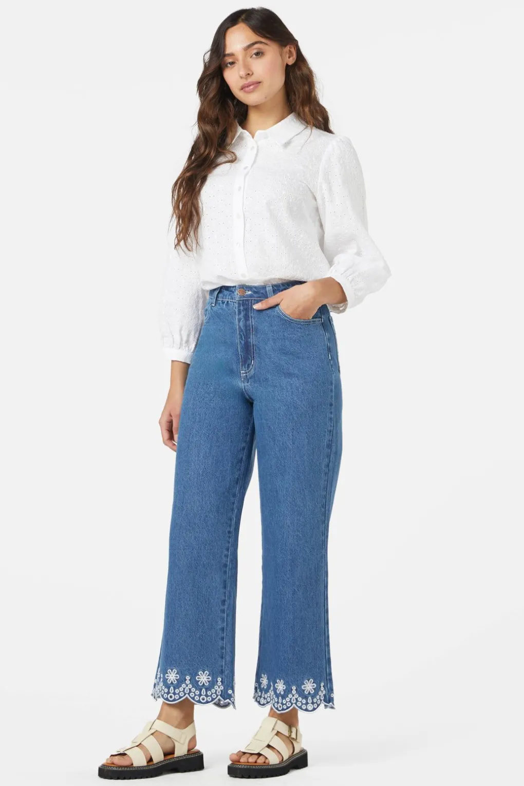 – An Elevated Take On A Denim Jean, With Scalloped Hem Cut Out Style Embroidery