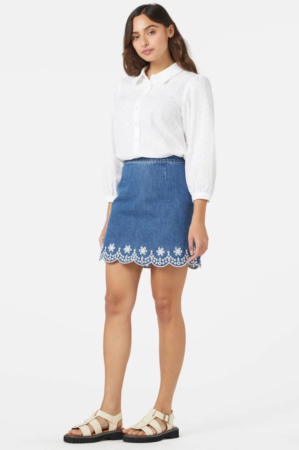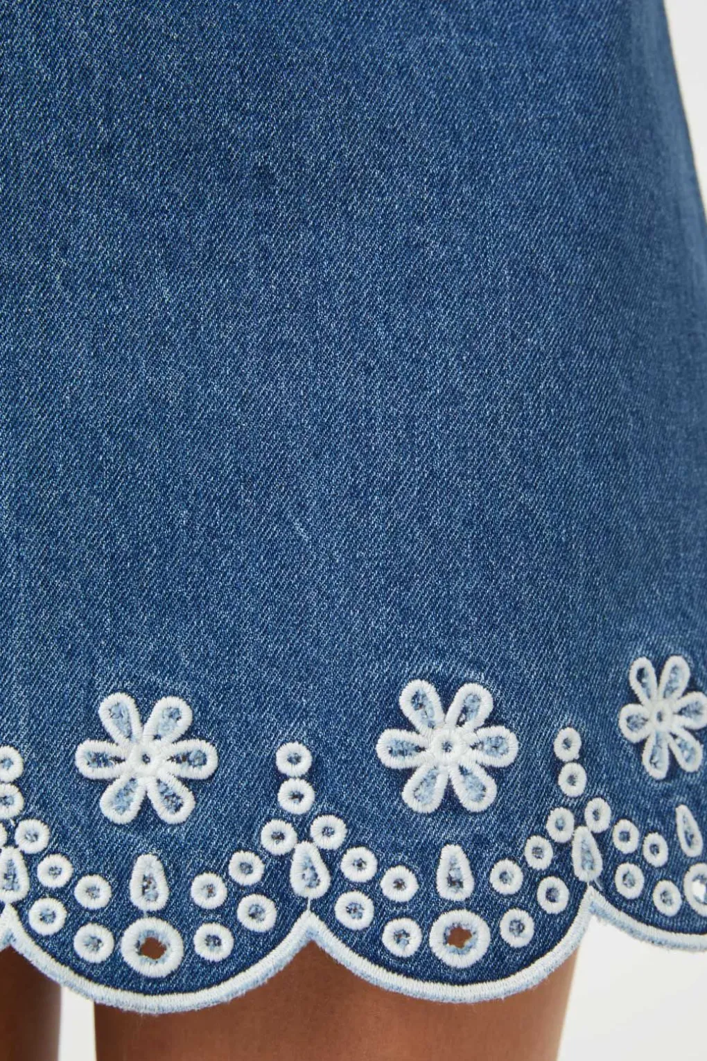 – An Elevated Take On A Denim Skirt, With Scalloped Hem Cut Out Style Embroidery