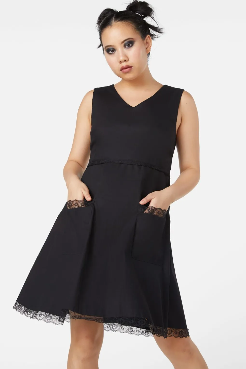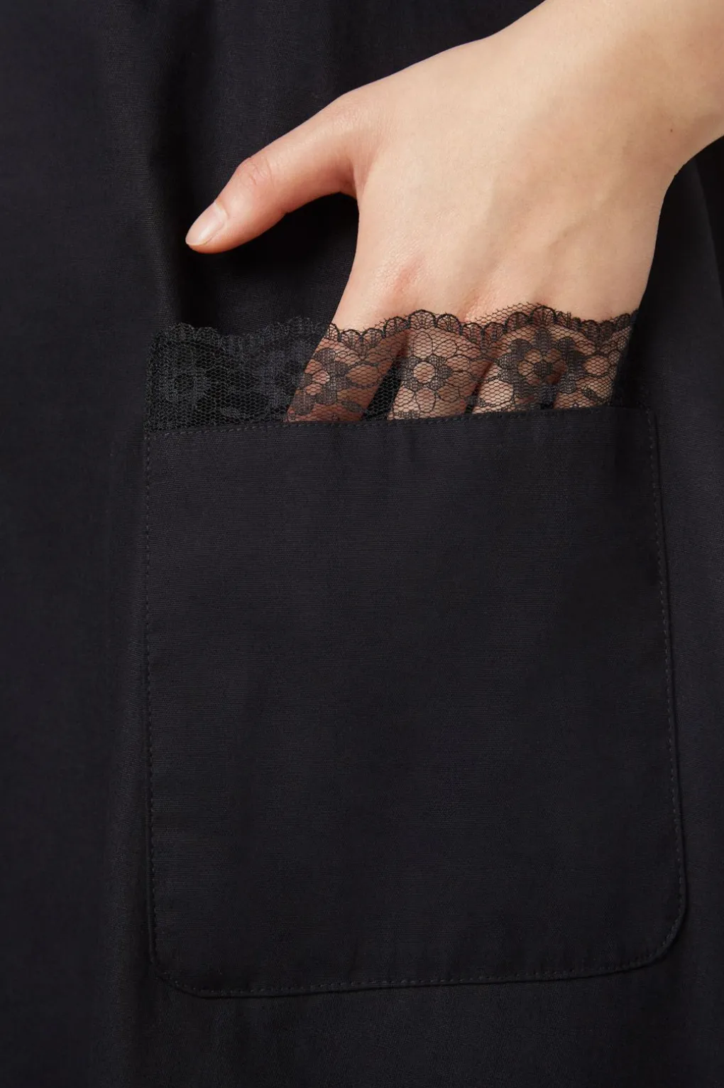 – Lace Detailing On Patch Pockets, Hem And Waist Seam