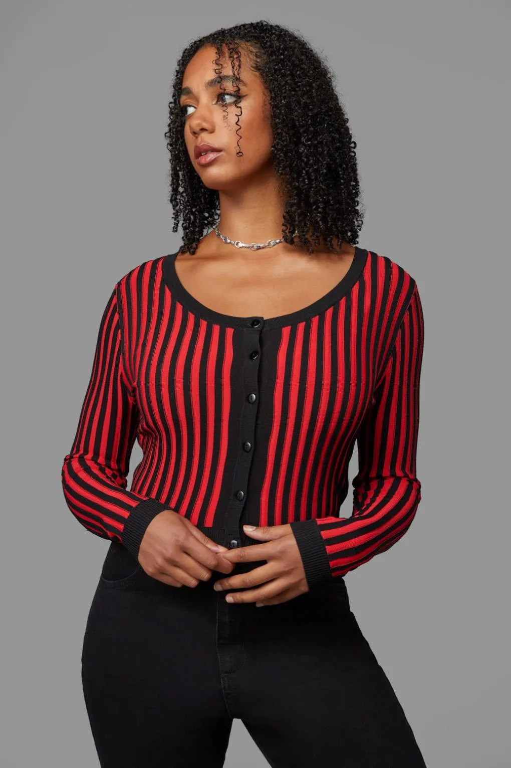 -Cardigan Is Constructed Using A Contrast Rib Fabric