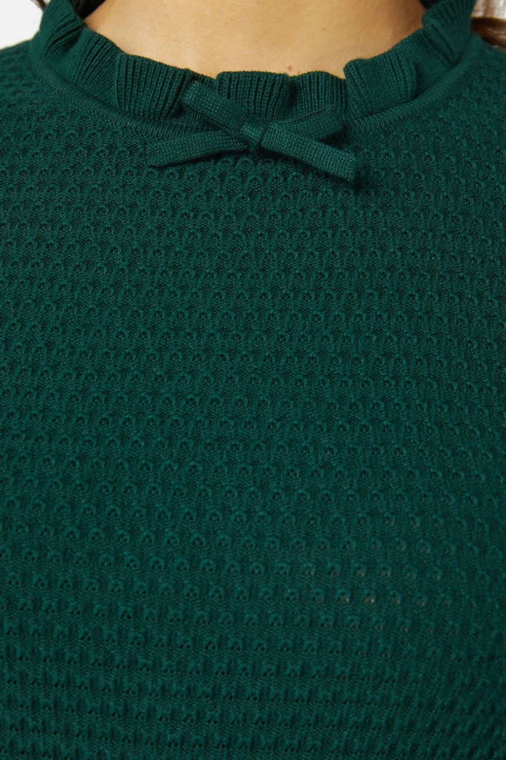 – A Layerable Knit Top With Ruffled Neckline And A Cute Bow Feature