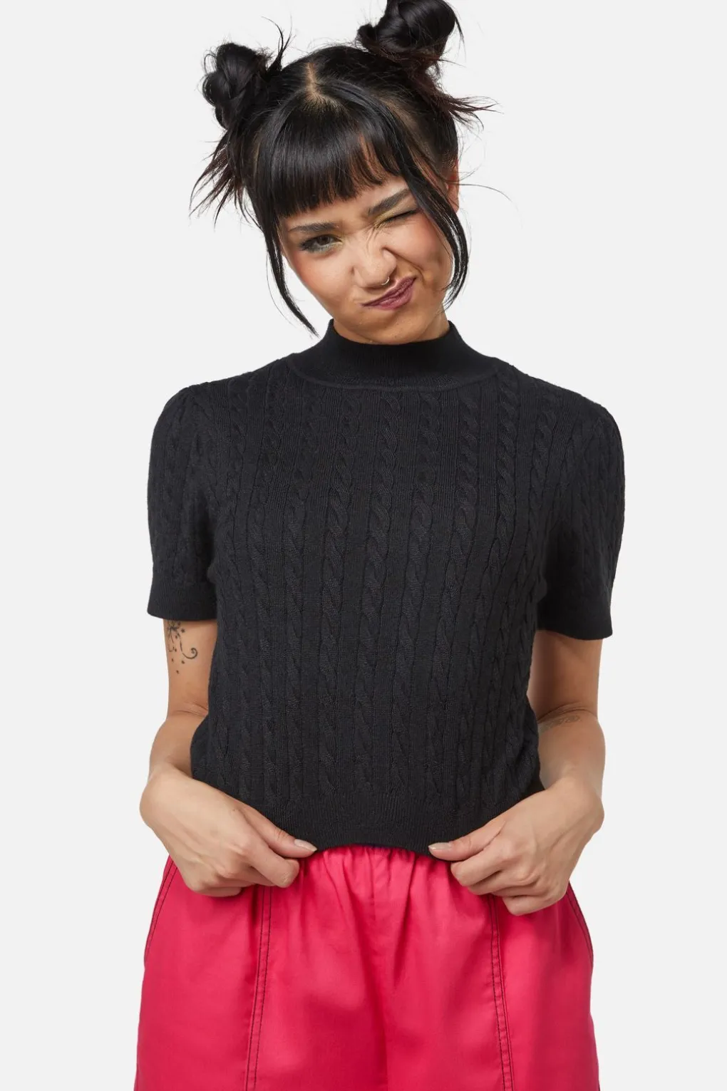 Cable Knit Mock Neck Top
