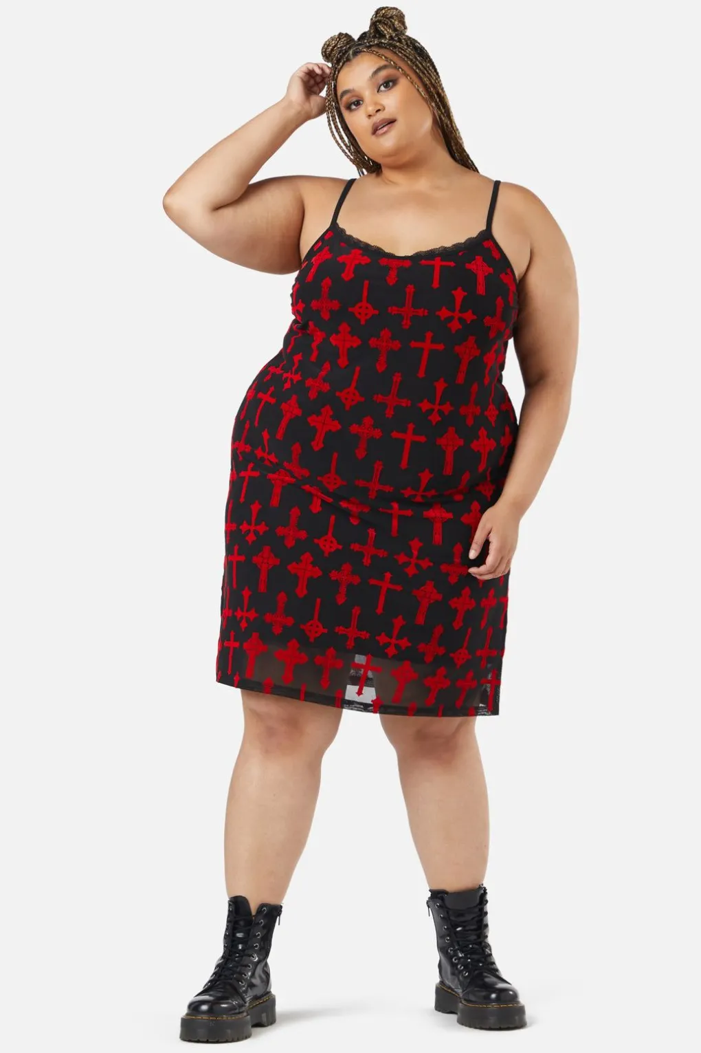 – All-Over Flocked Crucifix Pattern