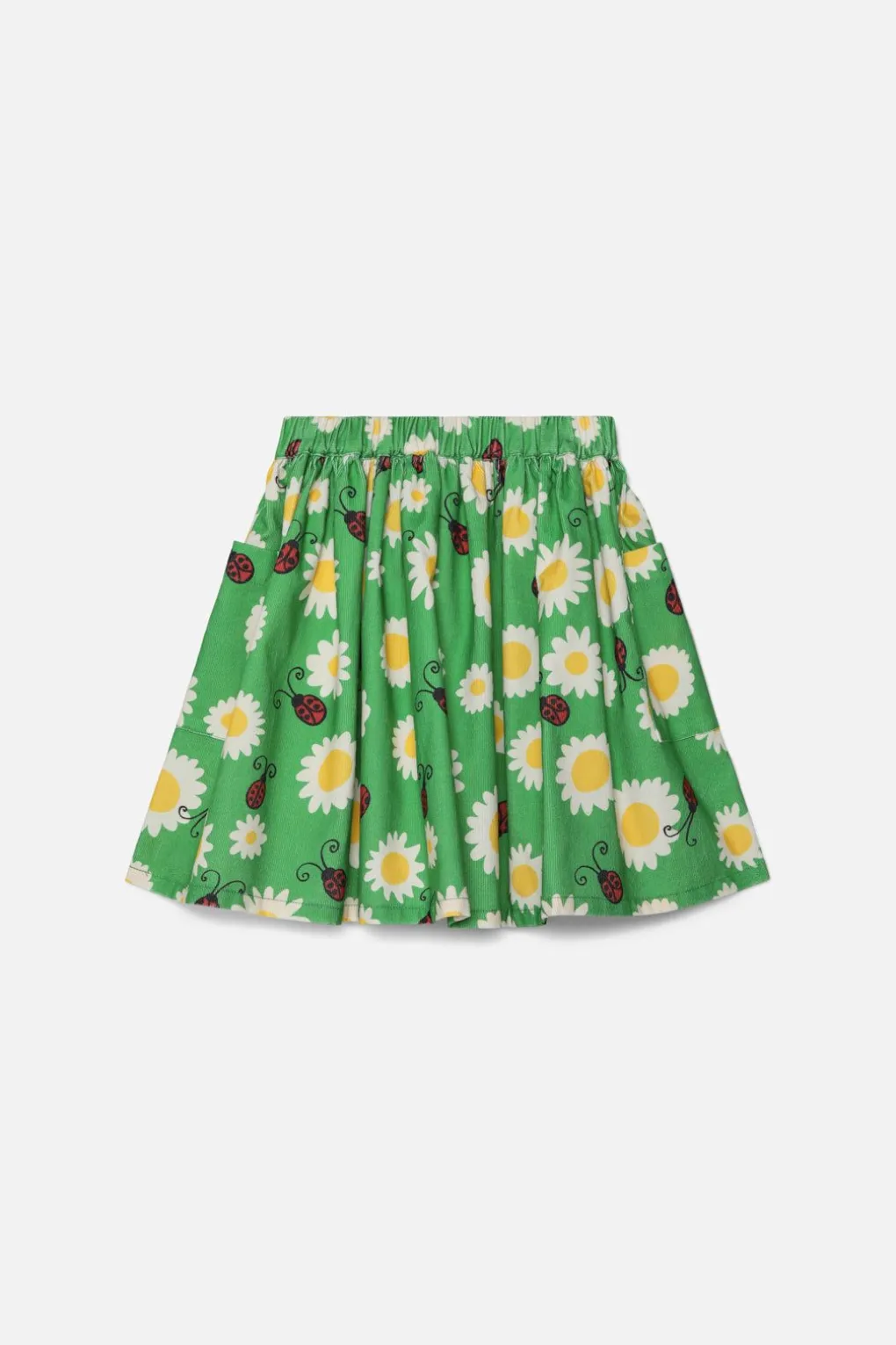 This Mid-Length Skirt Is Made Of Soft Cotton Baby Corduroy Fabric And Features A Cute Print Of Ladybird And Daisy Flowers.