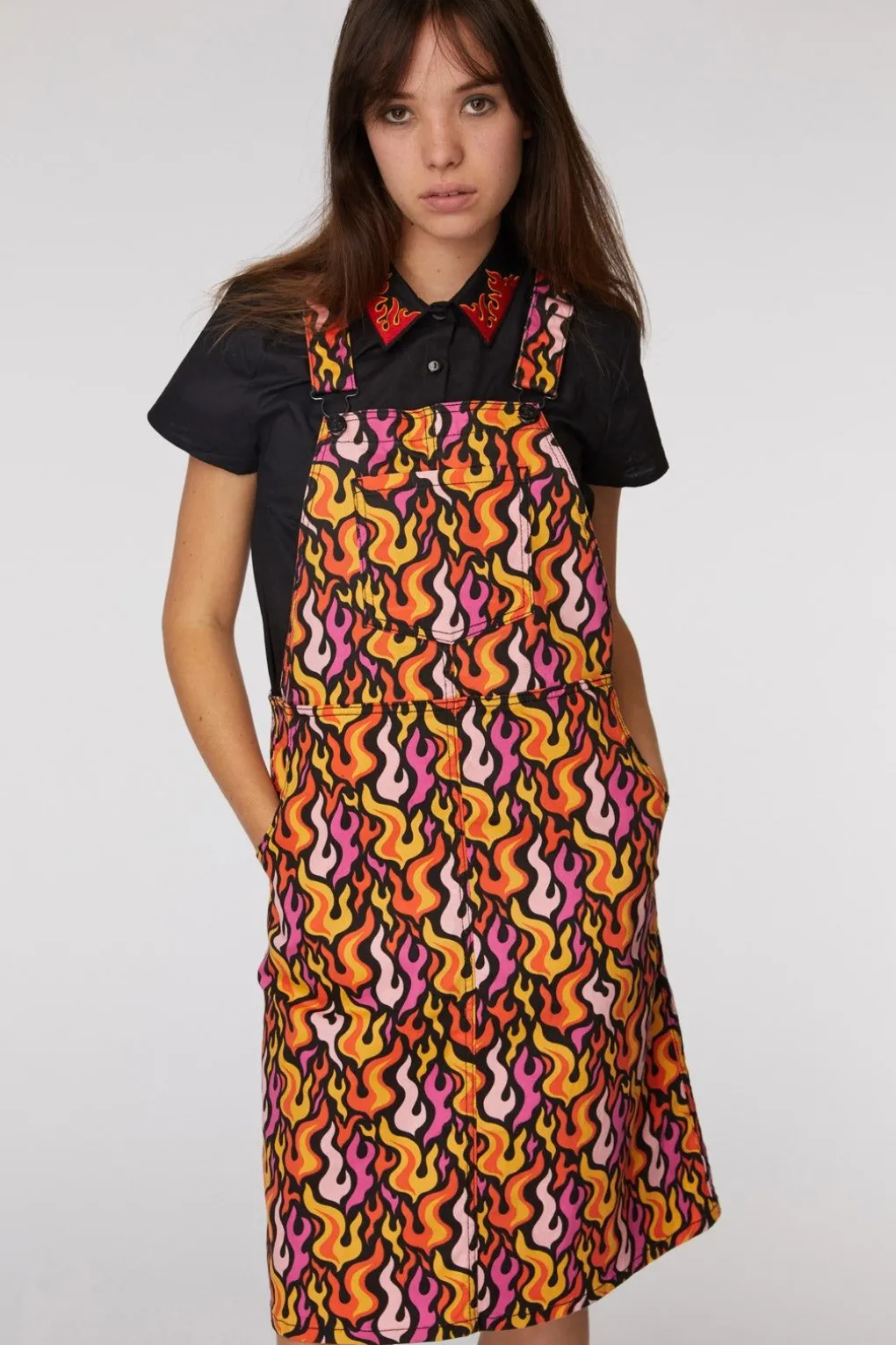 – Pinafore With Flame Print Detail