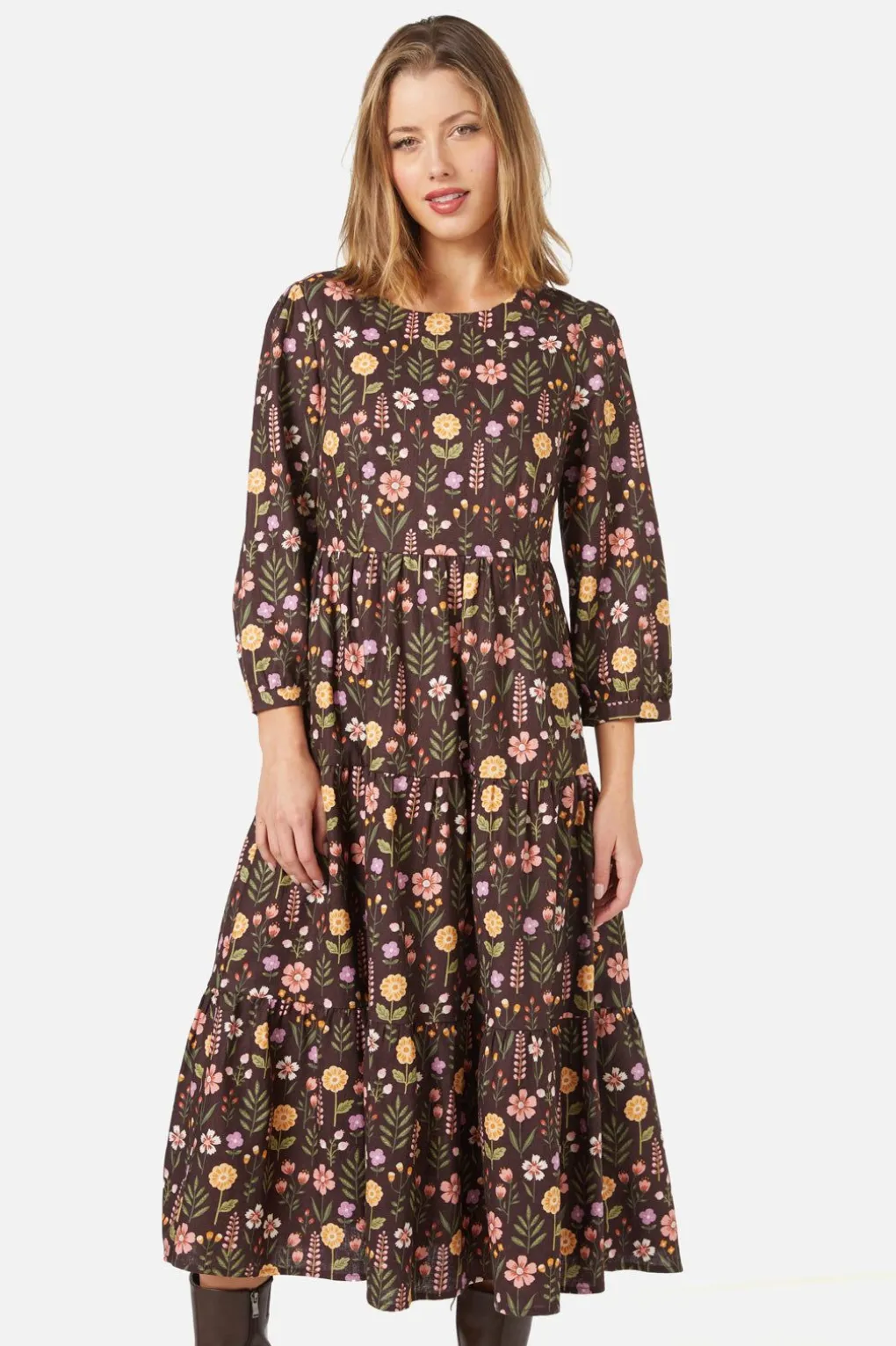 Flower Printed Tiered Midi Dress