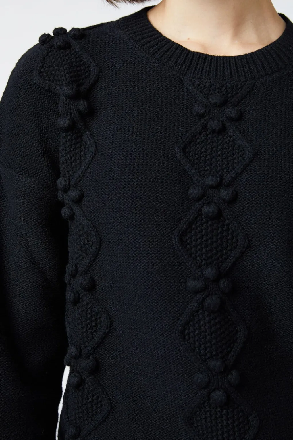– A Cozy Sweater Featuring A Cable And Bobble Style Knit