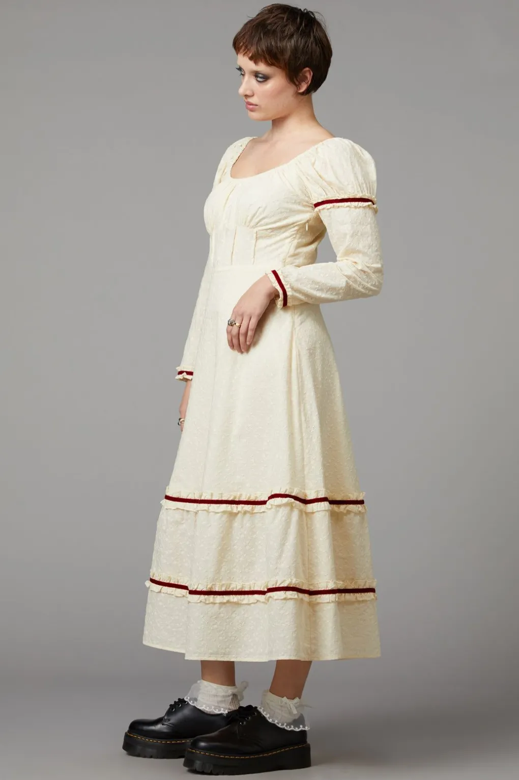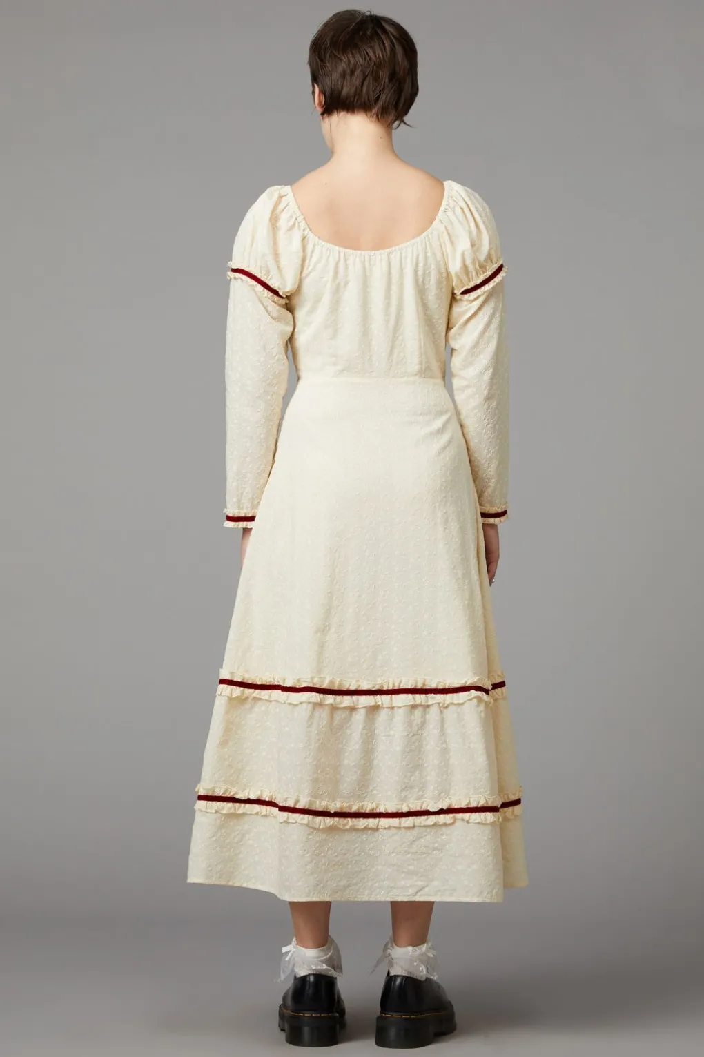 – Velvet Ribbon Details On Sleeves And Skirt