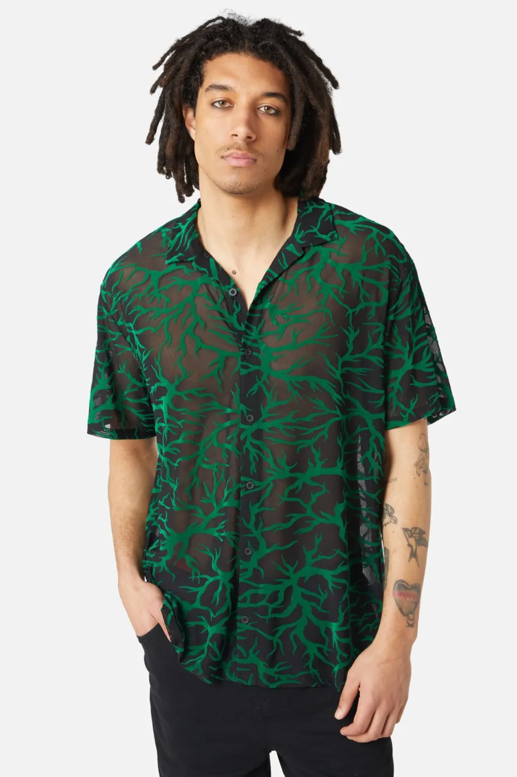 Neglected Flocked Mesh Short Sleeve Shirt