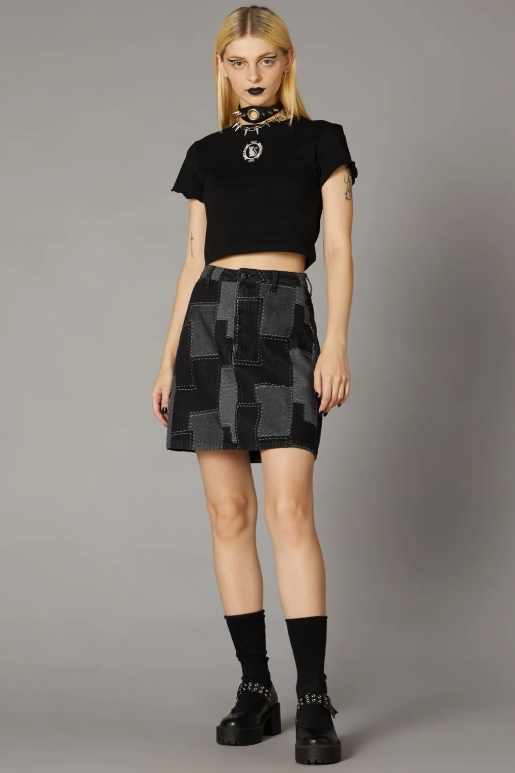 Patchwork Denim Skirt