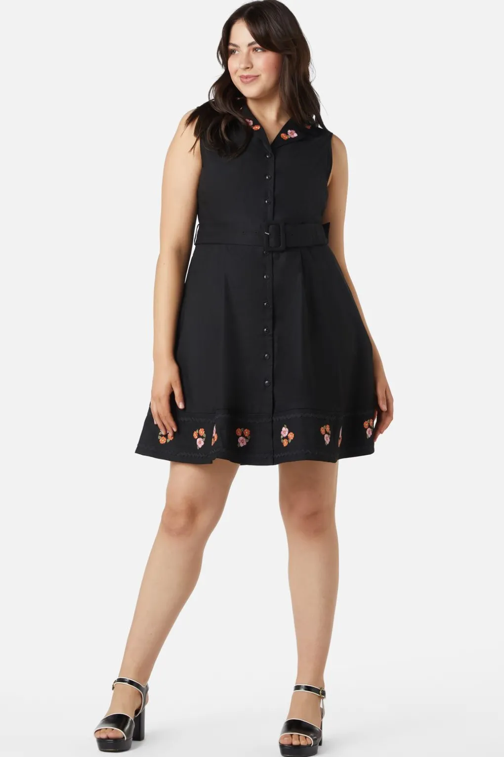 Floral Embroidered Button Through Dress