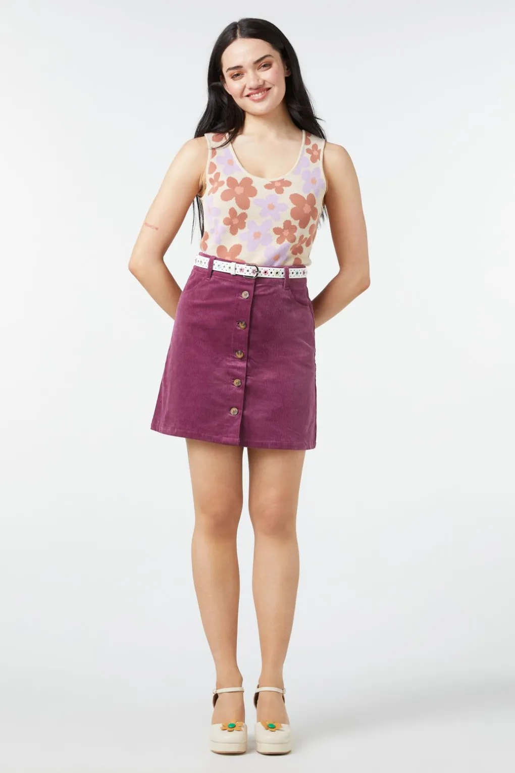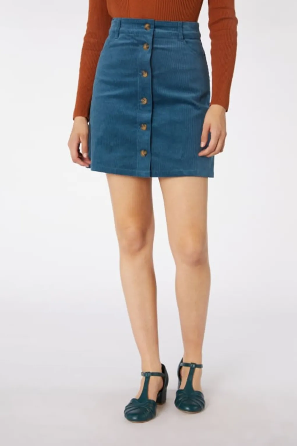 Button Through Corduroy Mini Skirt