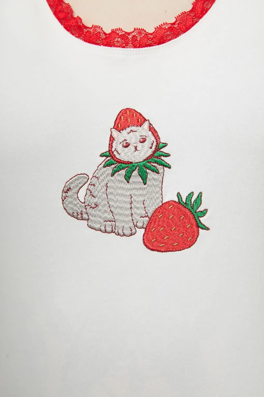 – Strawberry-Cat Embroidery On Front
