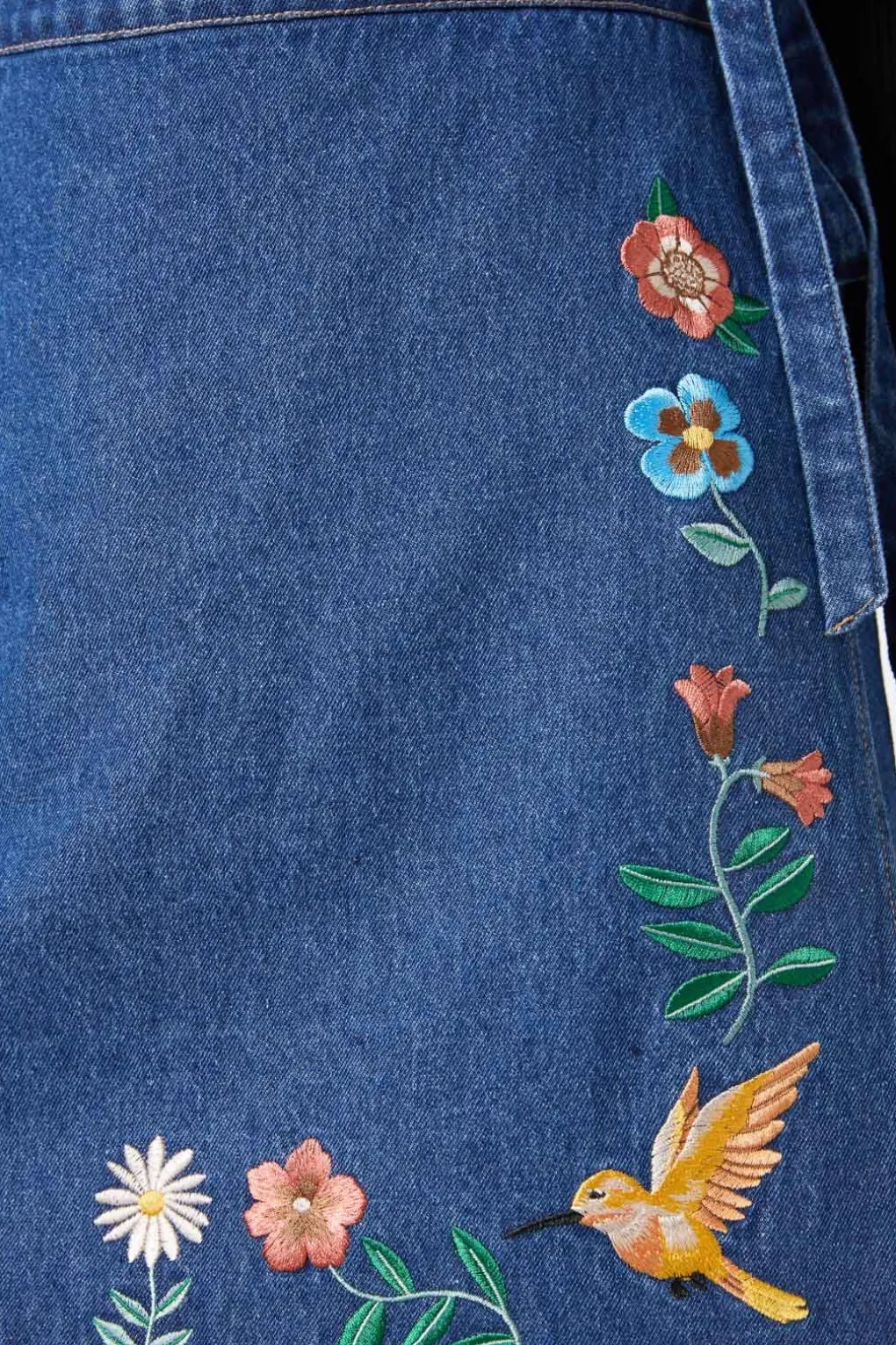 Denim Embroidered Wrap Skirt