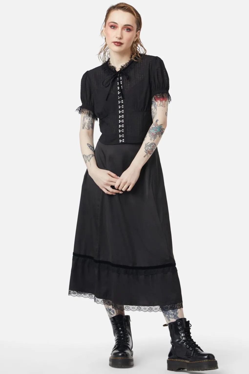 – Round Neckline With Lace Detail And Bow At Front Neck